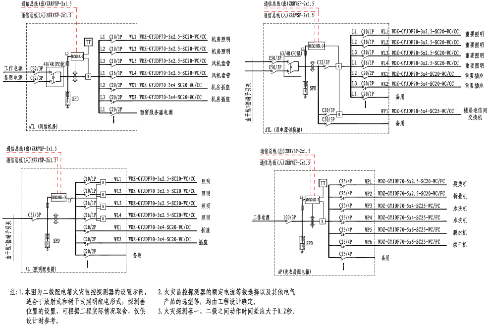二級(jí)配電箱電氣火災(zāi)監(jiān)控探測(cè)器設(shè)置示例