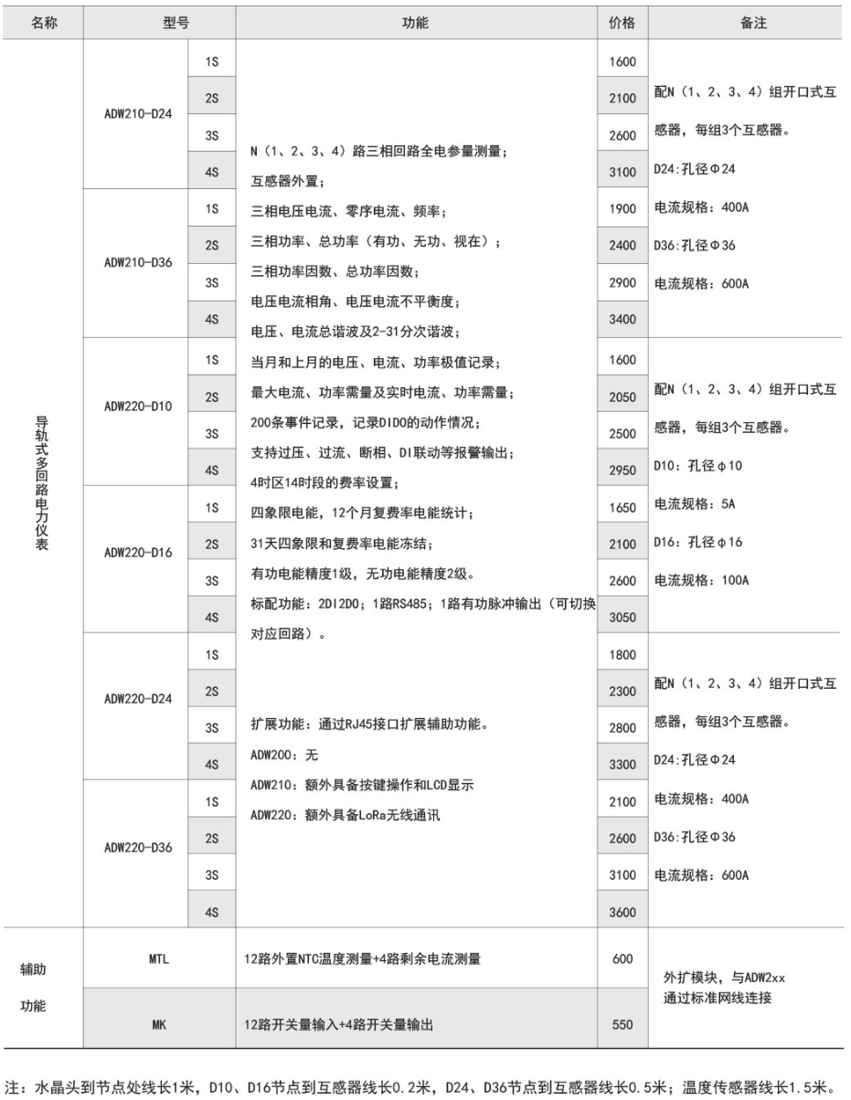 ADW2xx系列導(dǎo)軌式多回路電力儀表主要用于低壓三相回路全電參量測(cè)量,同時(shí)可選擇四個(gè)回路的電流輸入??芍苯踊蜷g接測(cè)量電壓、電流、功率、功率因數(shù)、相角、不平衡度、諧波等參數(shù)。 還可通過其RJ45接口擴(kuò)展輔助功能,實(shí)現(xiàn)DI、DO、測(cè)溫、剩余電流測(cè)量,以及2G、4G、LoRa、LoRaWan、NB-Lot無線通信功能。