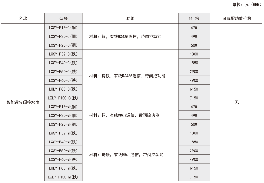 技術(shù)要求:帶閥控功能,口徑ND20mm,RS485通訊接口