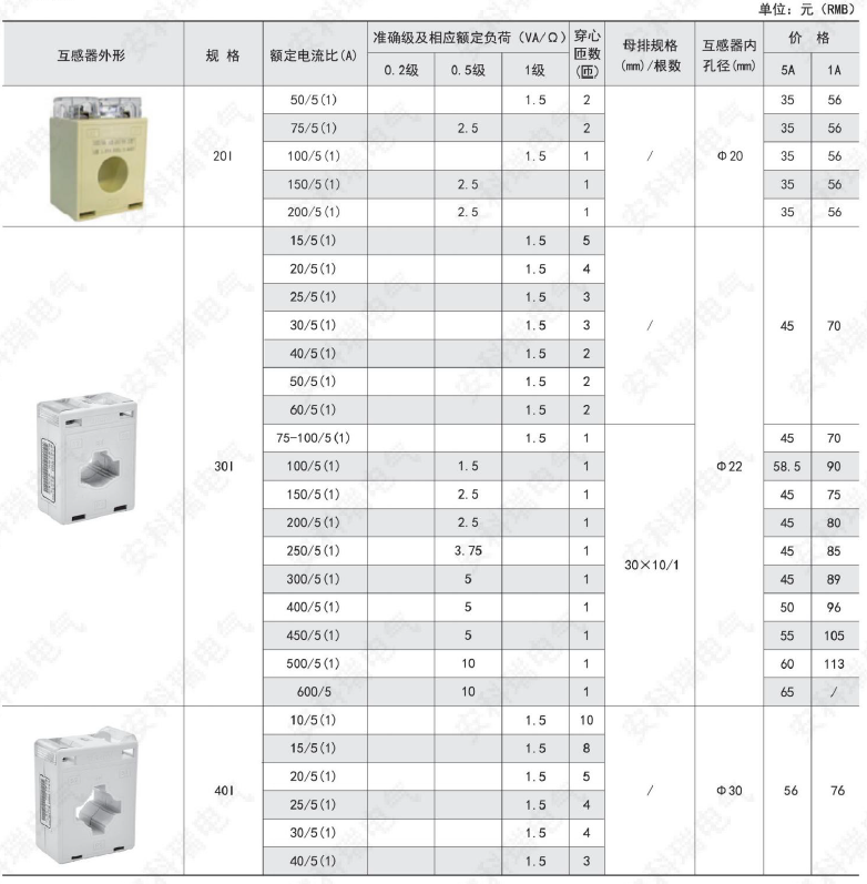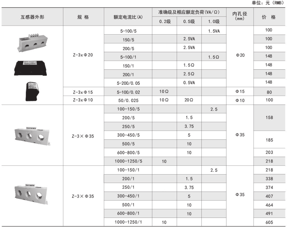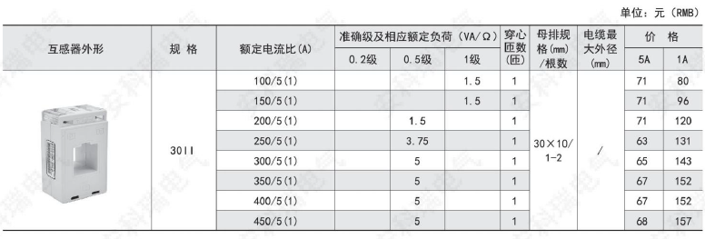 準確級及相應額定負荷(VA/Ω) |