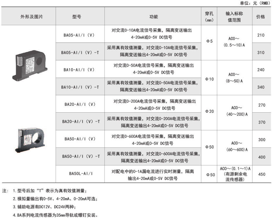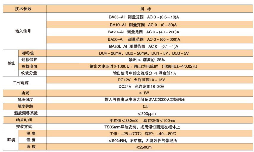 產(chǎn)品簡(jiǎn)介:BA系列產(chǎn)品應(yīng)用電磁感應(yīng)原理,對(duì)電網(wǎng)中的交流電流進(jìn)行實(shí)時(shí)測(cè)量,將其隔離變換為標(biāo)準(zhǔn)的直流信號(hào)輸出。