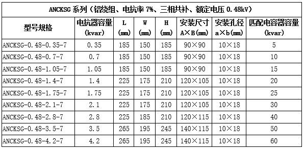 技術(shù)要求:適用電容器5kVAR;7%電抗率;銅芯