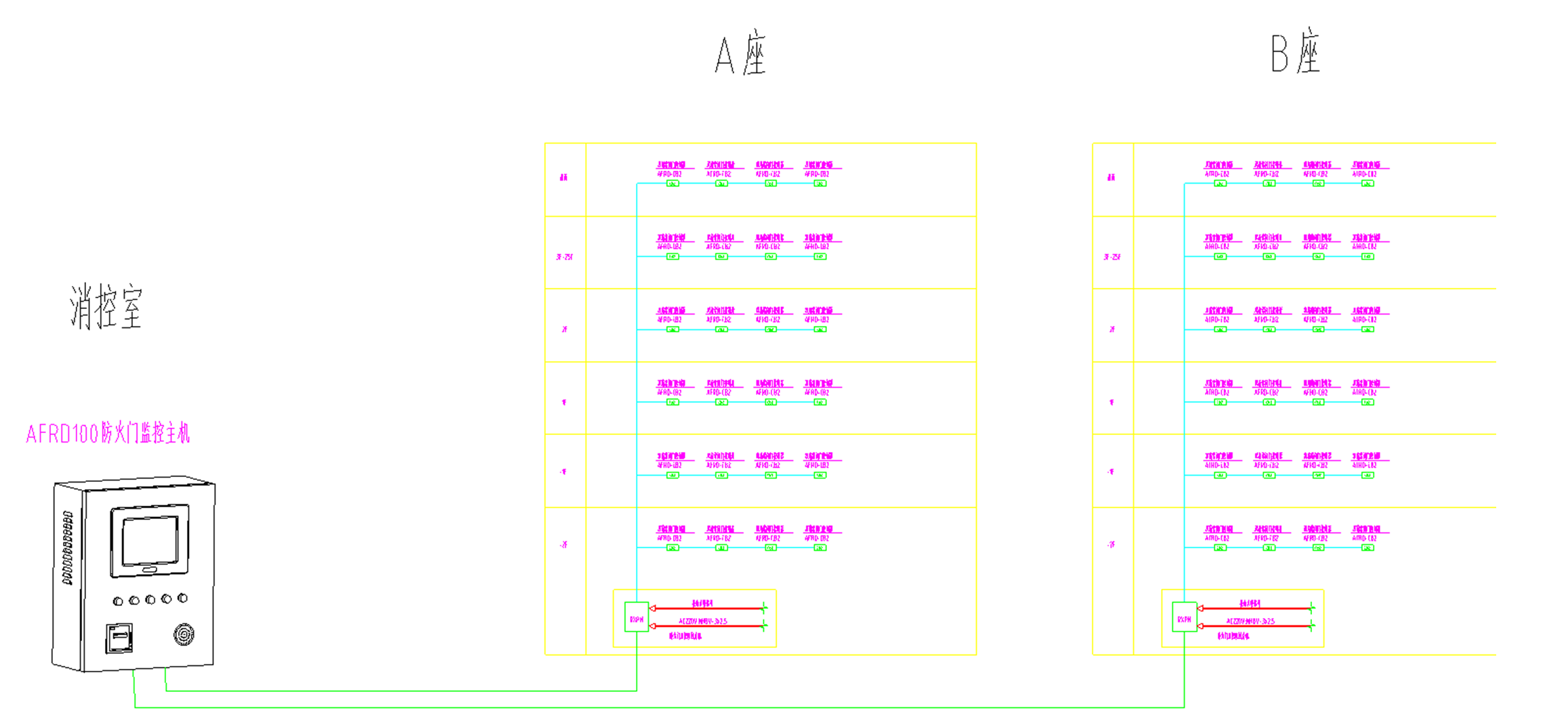 本項(xiàng)目為新疆•首府公館項(xiàng)目,現(xiàn)場各商住樓各樓道樓梯間及地下室區(qū)域的防火門安裝安科瑞AFRD系列防火門監(jiān)控模塊,在現(xiàn)場消防控制室設(shè)置安科瑞AFRD100/B壁掛式防火門監(jiān)控主機(jī),并在各棟樓內(nèi)安裝監(jiān)控區(qū)域分機(jī)實(shí)時(shí)監(jiān)控各防火門狀態(tài),防止防火門被異常開啟。
