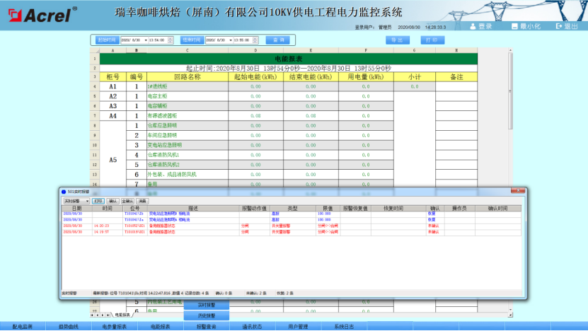 本項目含一個10KV變電所。安科瑞提供的Acrel-2000電力監(jiān)控系統(tǒng)包括:Acrel-2000軟件、5臺AM5SE系列微機保護、2臺直流屏、2臺溫控、128只智能電表AMC-72L/96L。