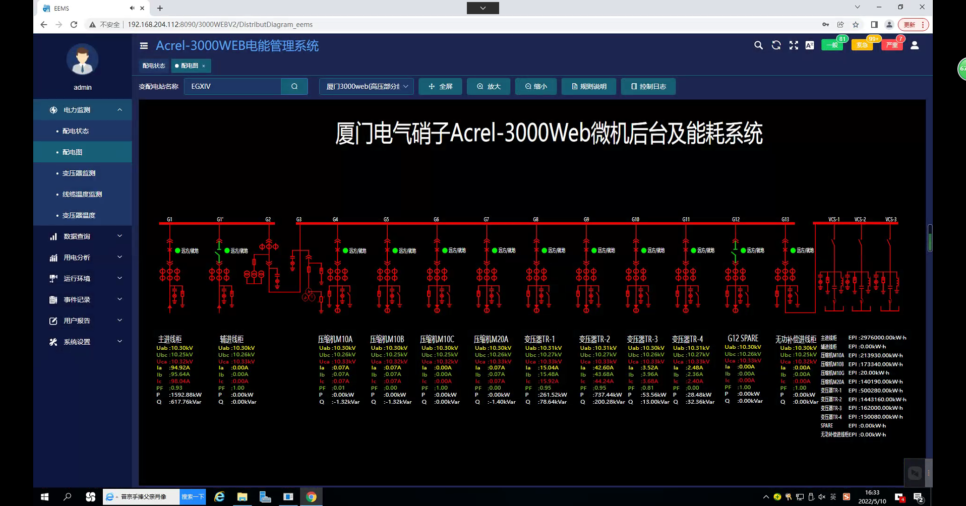 廈門電氣硝子項(xiàng)目,由2路10kV進(jìn)線,8臺變壓器配電室組成,為新建四期提供用能。