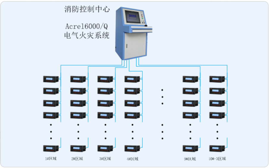 1.監(jiān)控報警 監(jiān)控設(shè)備能接收多臺探測器的漏電、溫度信息,報警時發(fā)出聲光報警信號