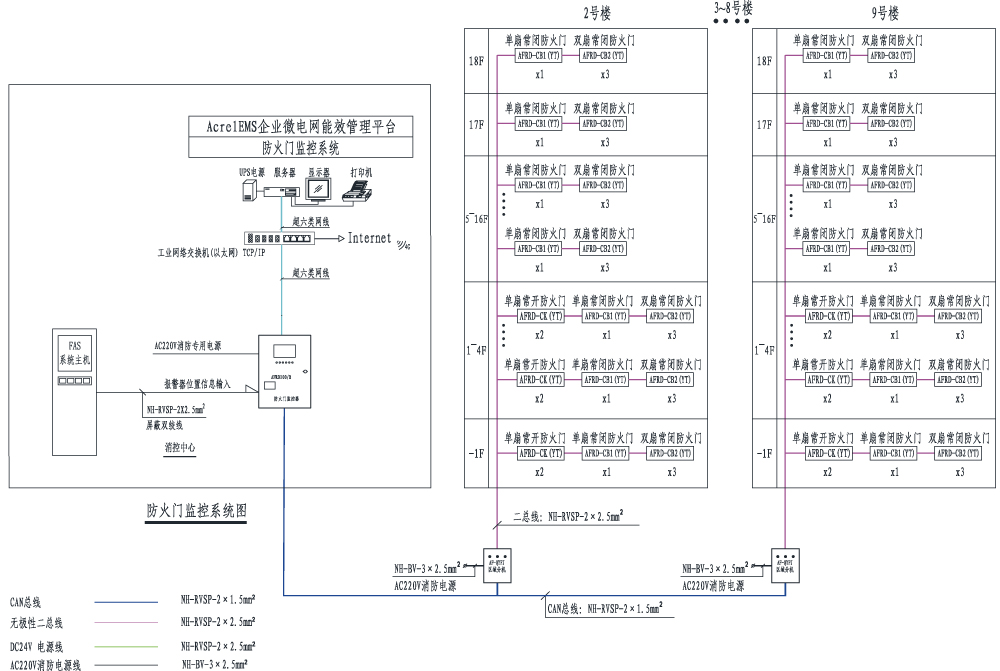 AFRD100防火門監(jiān)控系統(tǒng),是根據(jù)國家現(xiàn)行規(guī)范標準由安科瑞電氣股份有限公司研發(fā)的全數(shù)字化獨立運行的系統(tǒng),已通過國家消防電子產(chǎn)品質(zhì)量監(jiān)督檢驗中心的消防電子產(chǎn)品試驗認證,并且均通過嚴格的EMC電磁兼容試驗,保證了該系列產(chǎn)品在低壓配電系統(tǒng)中的安全正常運行,現(xiàn)均已批量生產(chǎn)并在全國得到廣泛地應(yīng)用。該系統(tǒng)通過對電動閉門器、電磁釋放器、門磁開關(guān)等進行信號采集及控制,實現(xiàn)了防火隔離和防煙,并根據(jù)用戶的需求,還可以與AcrelEMS企業(yè)微電網(wǎng)管理云平臺或電氣火災(zāi)自動報警系統(tǒng)等進行數(shù)據(jù)交換和共享。