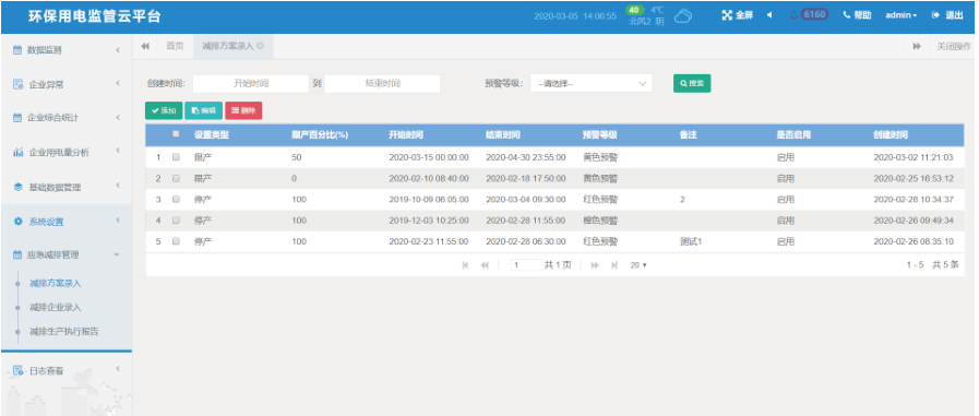 減排方案錄入:根據(jù)減排計劃錄入減排方案,支持應(yīng)急預(yù)案的啟動。