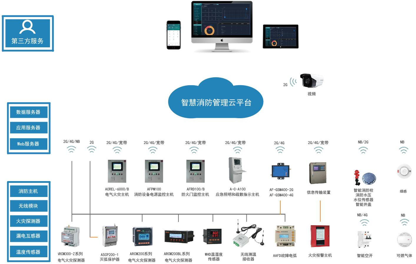 智慧消防管理云平臺包含了智慧用電子系統(tǒng)、防排煙子系統(tǒng)、消防水子系統(tǒng)、消防設備電源子系統(tǒng)、防火門子系統(tǒng)、應急照明和疏散指示子系統(tǒng)、消防設備管理子系統(tǒng)和視頻監(jiān)控子系統(tǒng)等。