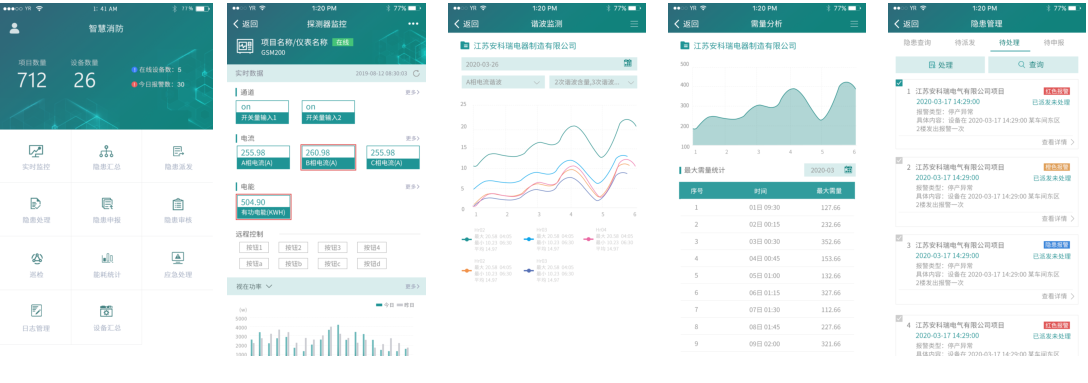 APP支持Android、iOS操作系統(tǒng),方便用戶查看電氣火災、防排煙、消防水、消防設備電源、防火門、消防設備管理、視頻 監(jiān)控、火災報警等子系統(tǒng)的實時監(jiān)控數據、報警信息、能耗統(tǒng)計等。
