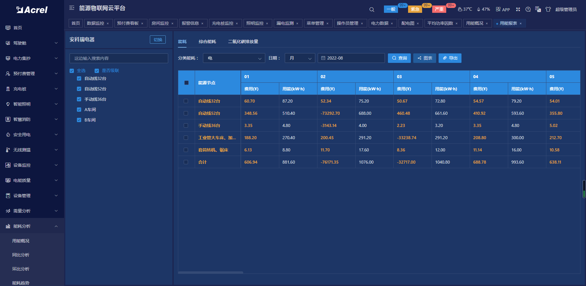 能耗分析模塊采用自動化、信息化技術,實現從能源數據采集、過程監(jiān)控、能源介質消耗分析、能耗管理等全過程的自動化、科學化管理,使能源管理、能源生產以及使用的全過程有機結合起來,運用先進的數據處理與分析技術,進行離線生產分析與管理,實現全廠能源系統的統一調度,優(yōu)化能源介質平衡、有效利用能源,提高能源質量、降低能源消耗,達到節(jié)能降耗和提升整體能源管理水平的目的。