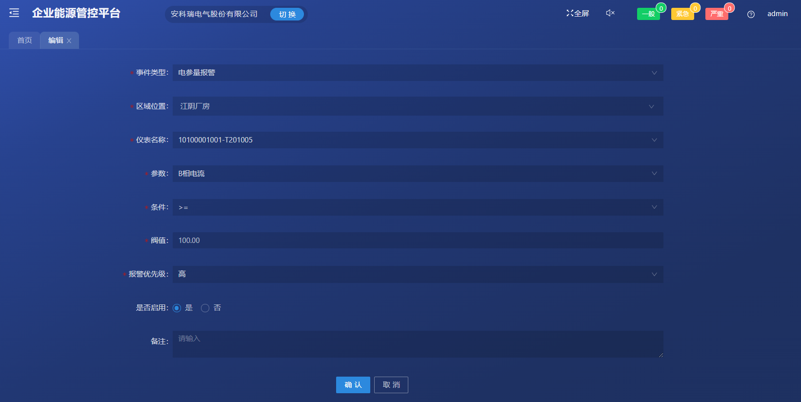 ◆ 安全檢測(cè):對(duì)能源報(bào)警信息進(jìn)行集中顯示,可以對(duì)報(bào)警閾值信息進(jìn)行相關(guān)處理操作,可以對(duì)報(bào)警參數(shù)進(jìn)行在線設(shè)置,當(dāng)能源參數(shù)越限報(bào)警,可提供報(bào)警重要性等級(jí)分類(lèi),具備短信、APP推送、郵件、語(yǔ)音等信息報(bào)警提示;