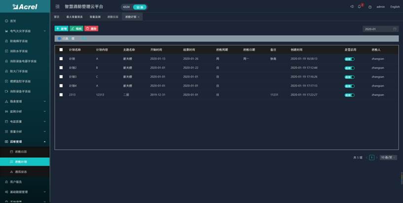 運維管理包括巡檢日歷、巡檢計劃、設備狀態(tài)等功能。